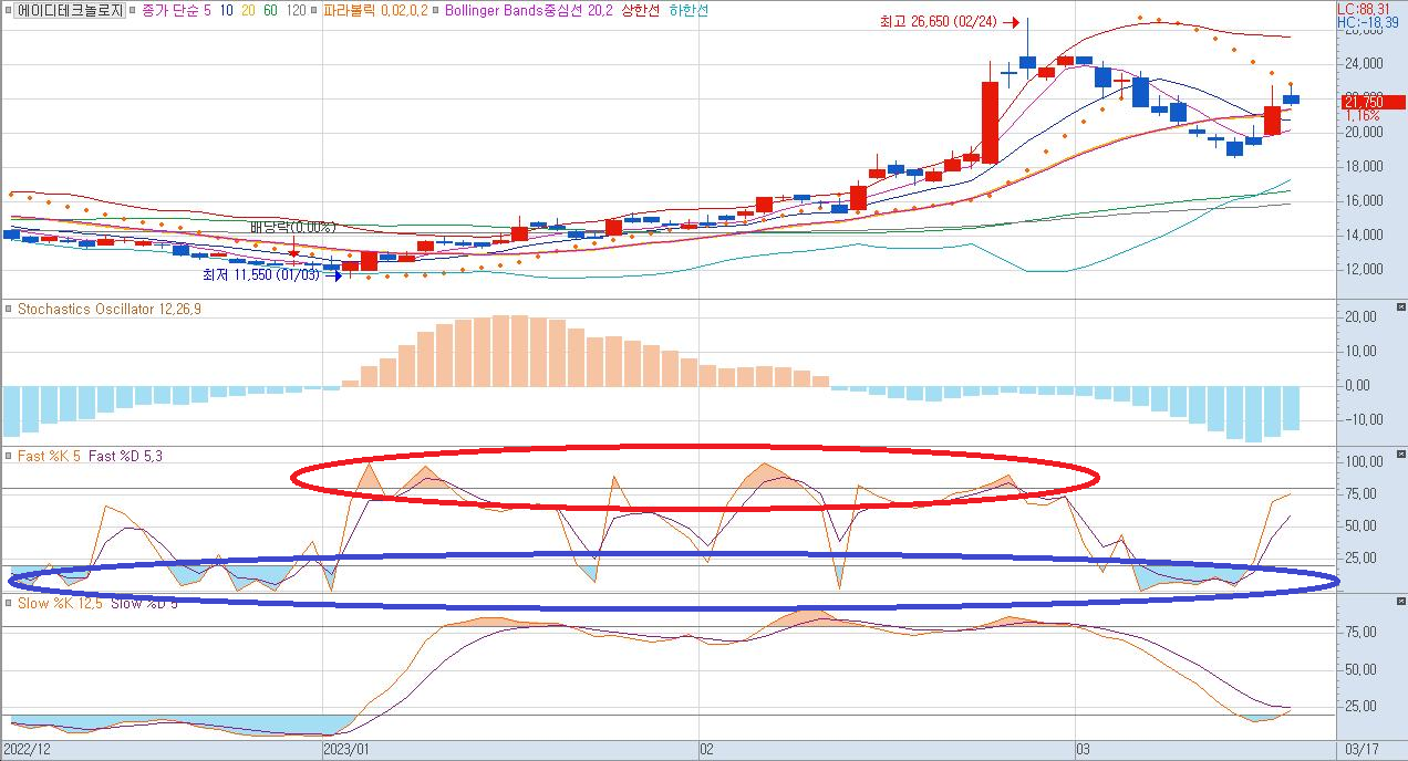 스톡캐스틱(Stochastic Oscillator)은 주식 시장에서 매수 신호와 매도 신호를 제공하는 기술적 분석 도구 중 하나입니다.
