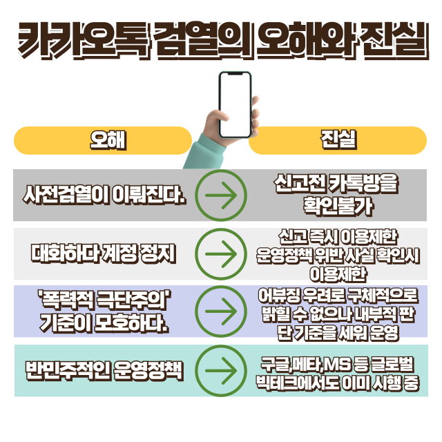 🔍 카카오톡이 사전검열을 한다고? 정치적 발언만으로 계정이 정지된다고? 논란의 중심에 선 카카오톡 운영정책 개정의 모든 것을 낱낱이 파헤쳐 보겠습니다.